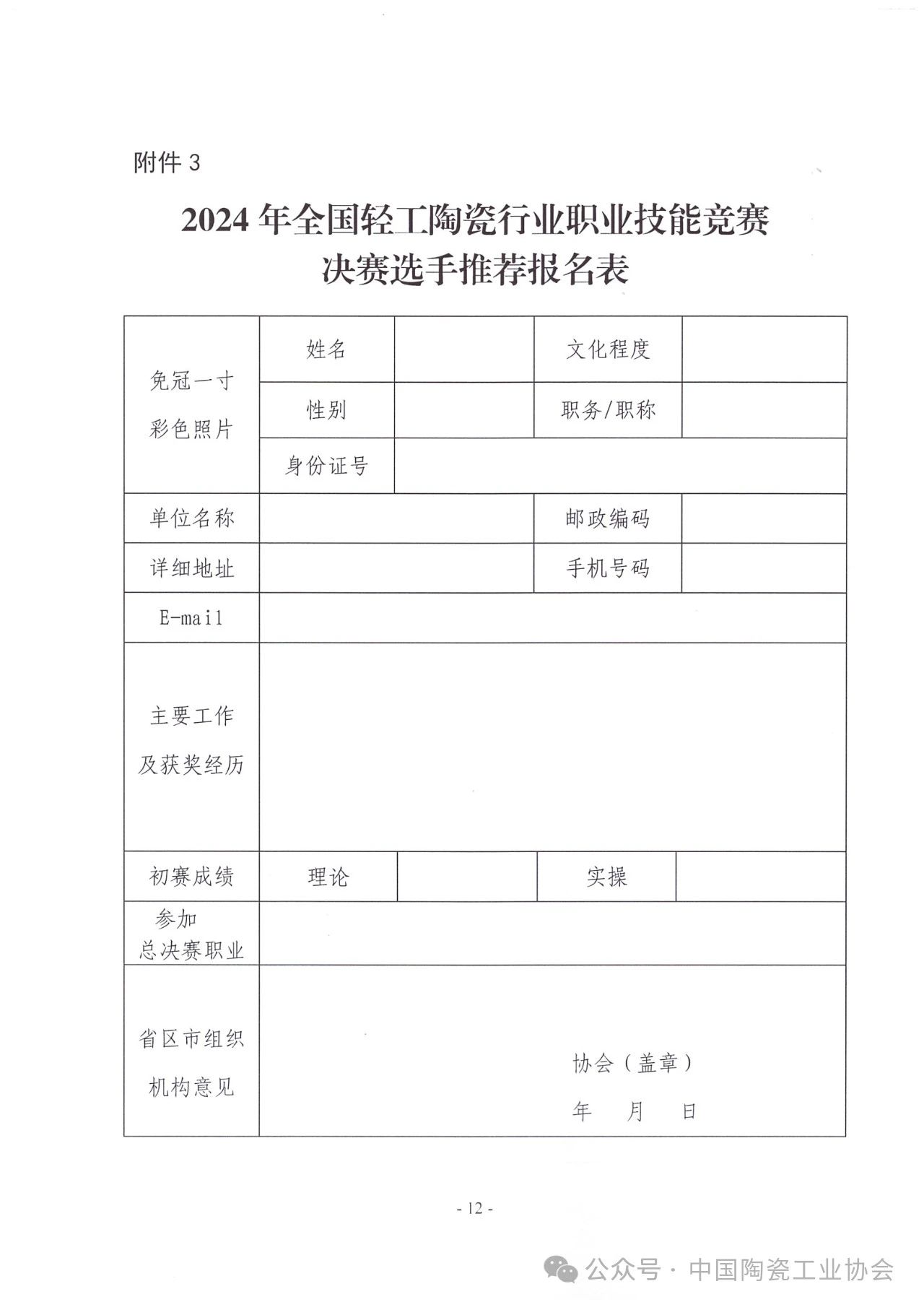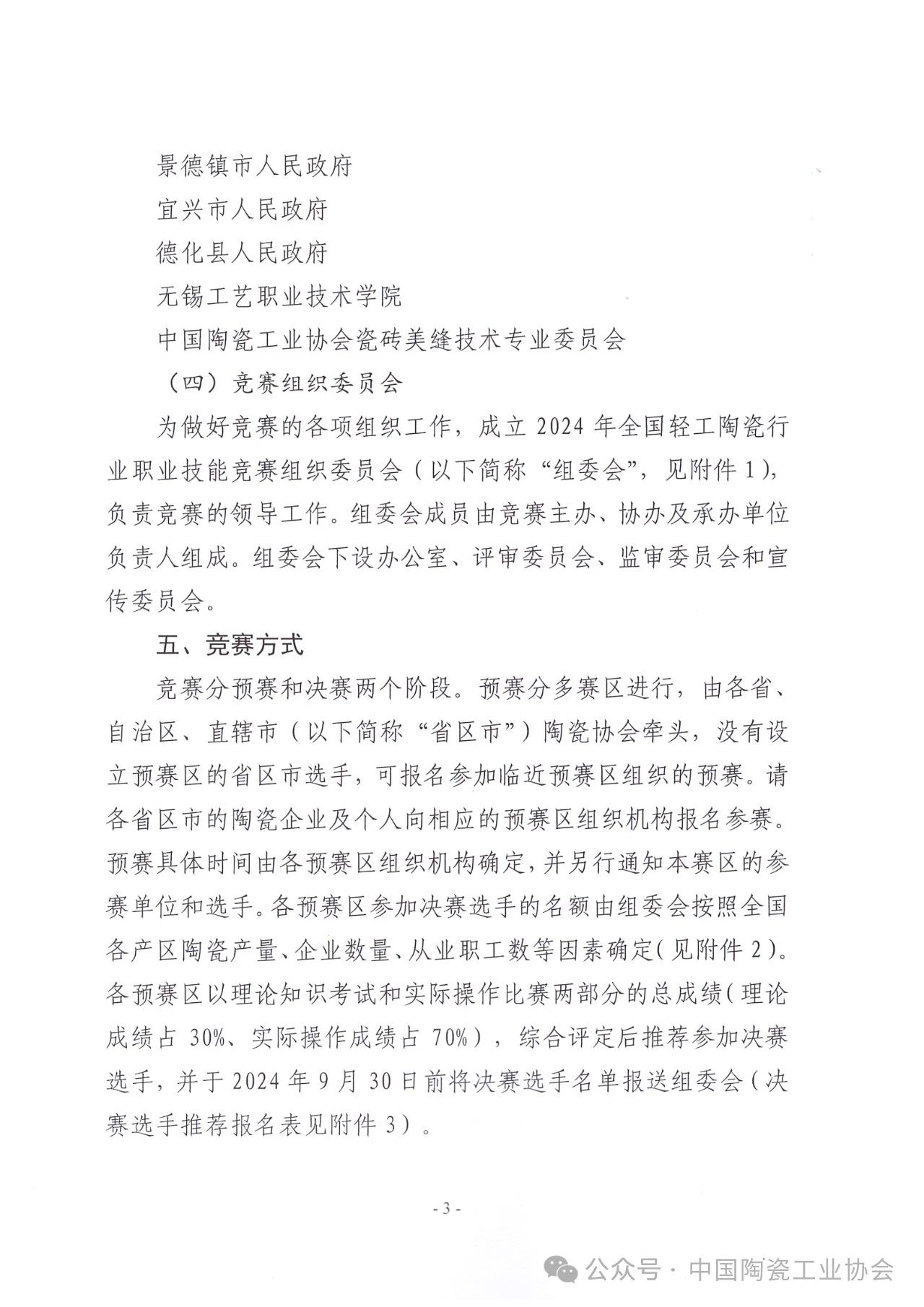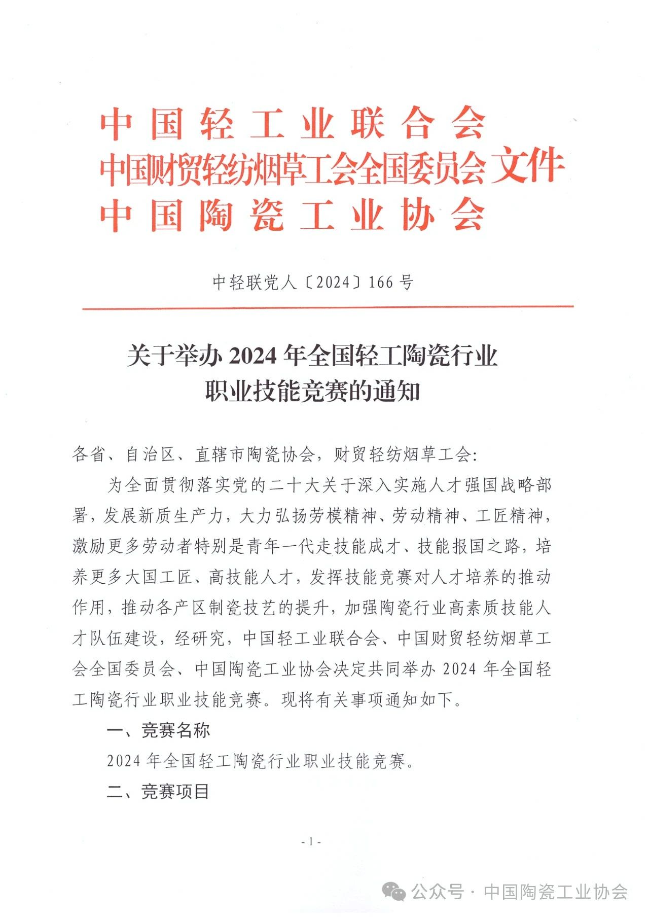 【通知】關(guān)于舉辦2024年全國(guó)輕工陶瓷行業(yè)職業(yè)技能競(jìng)賽的通知