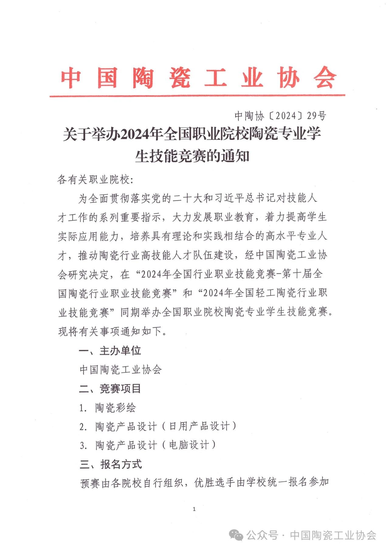 【通知】關(guān)于舉辦2024年全國(guó)職業(yè)院校陶瓷專業(yè)學(xué)生技能競(jìng)賽的通知