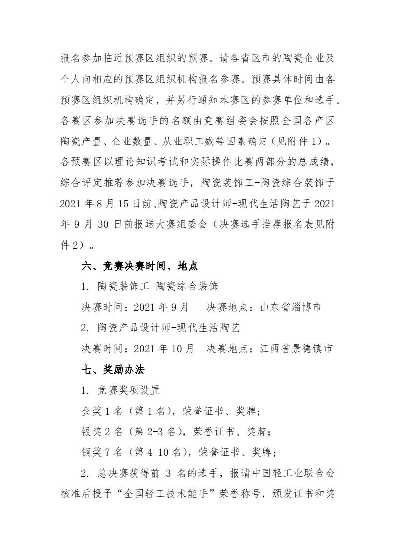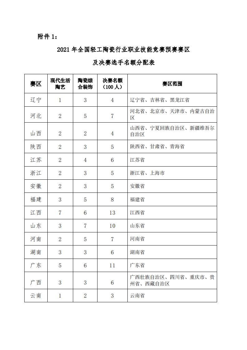 附件:1.2021年全國輕工陶瓷行業(yè)職業(yè)技能競賽預賽賽區(qū) 及決賽選手名額分配表