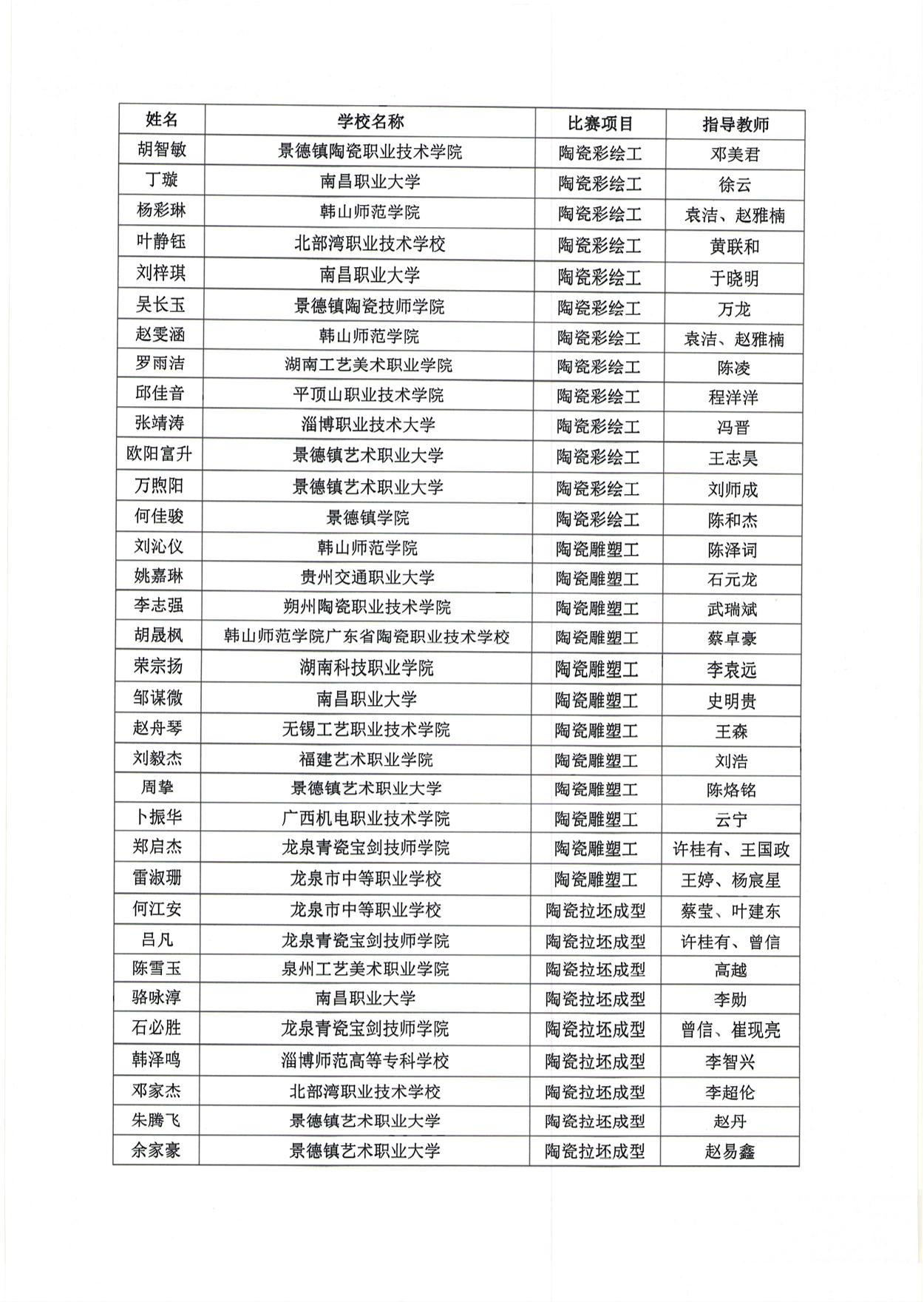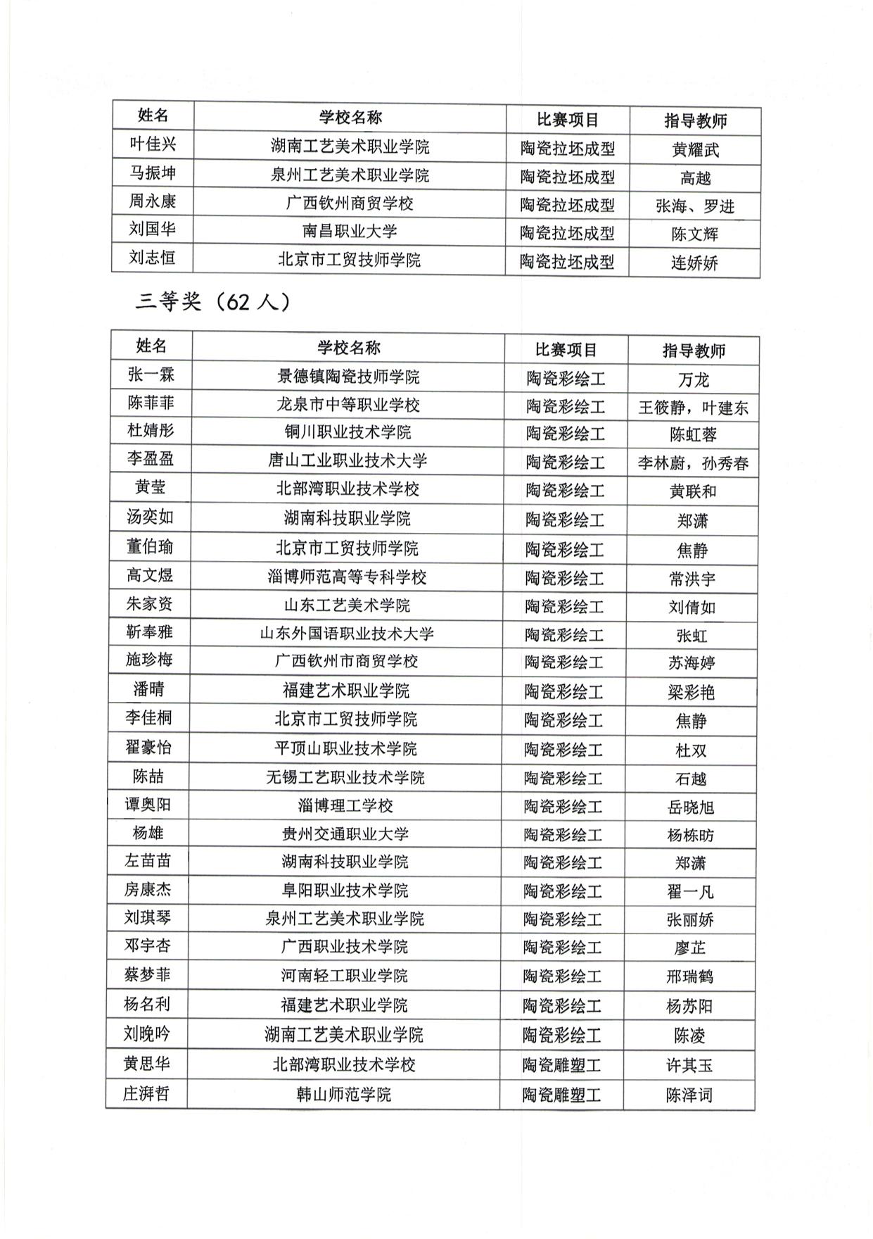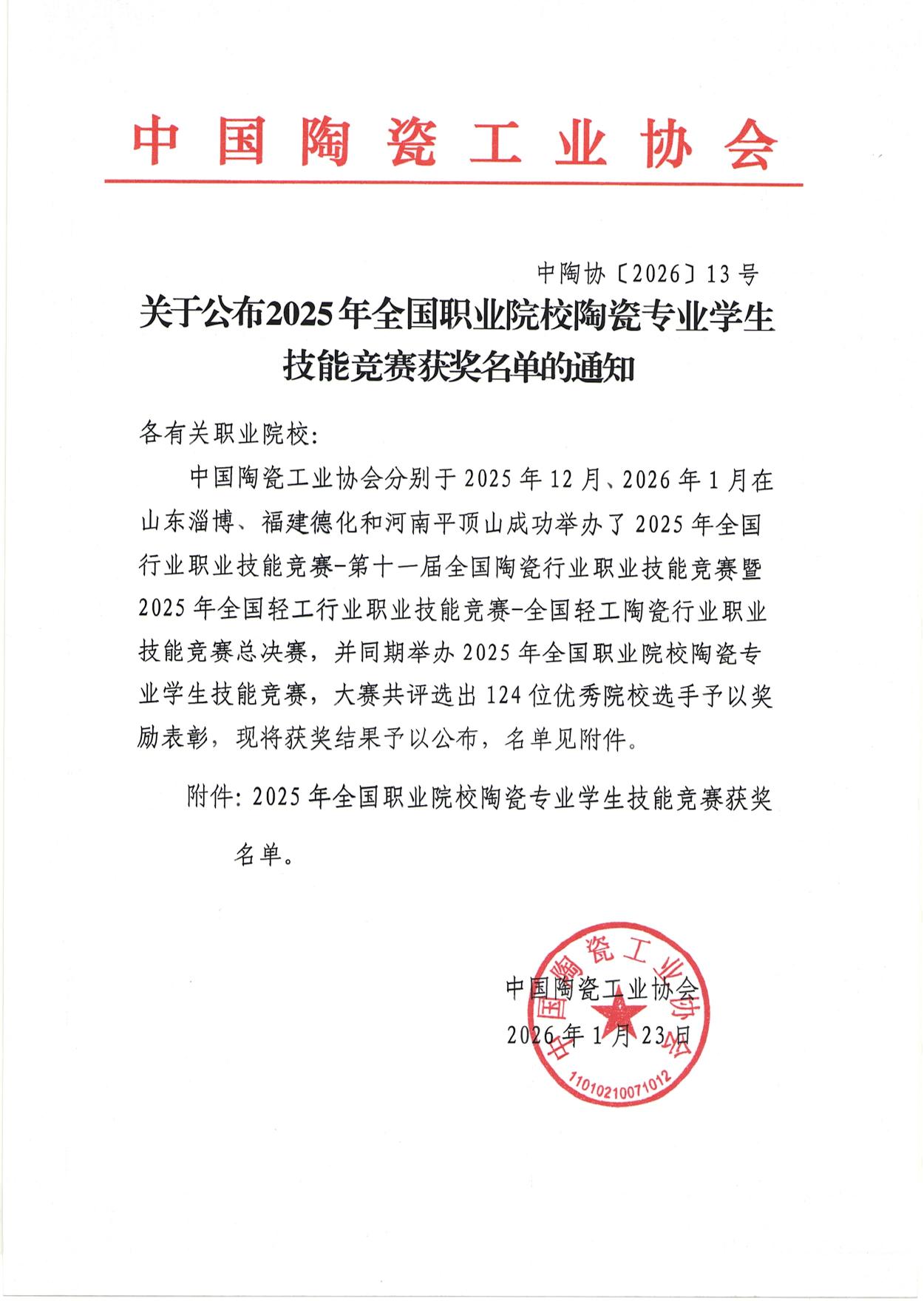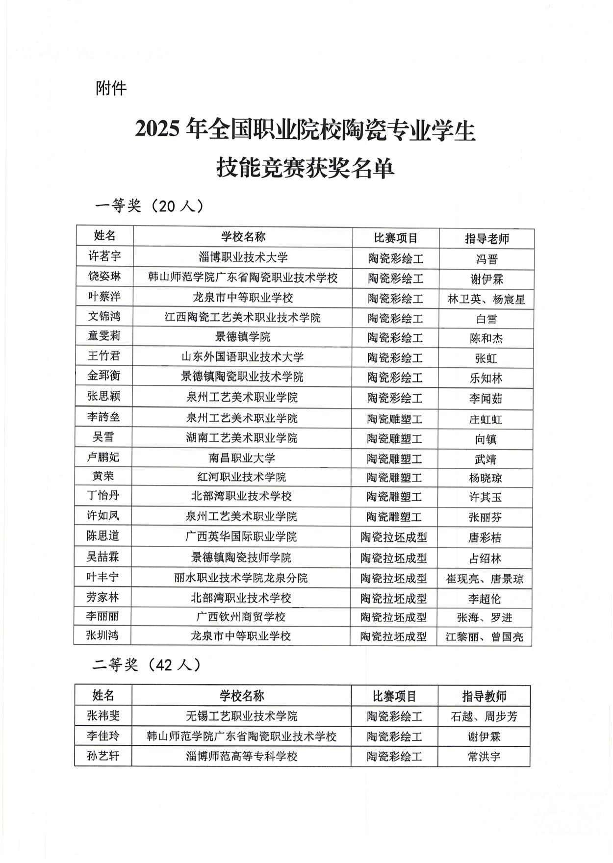 關(guān)于公布2025年全國職業(yè)院校陶瓷專業(yè)學(xué)生技能競賽獲獎名單的通知