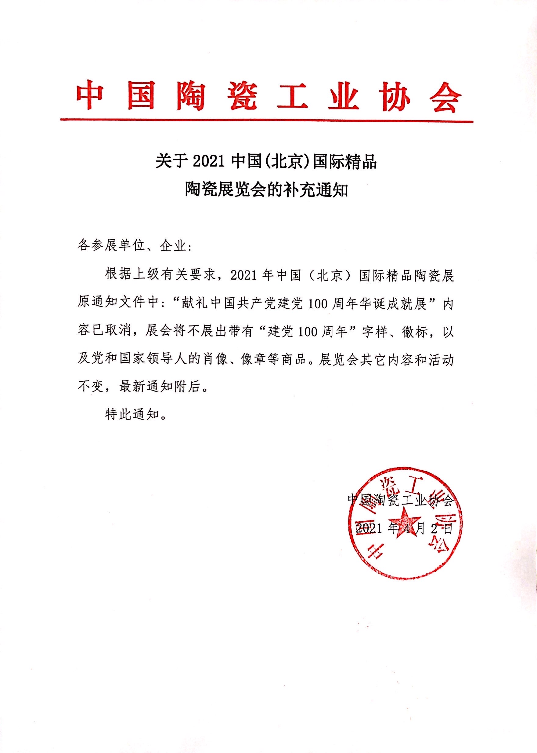 關(guān)于2021中國(guó)(北京)國(guó)際精品陶瓷展覽會(huì)的補(bǔ)充通知.docx