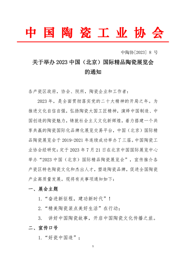 關(guān)于舉辦2023中國(guó)(北京)國(guó)際精品陶瓷展覽會(huì) 的通知