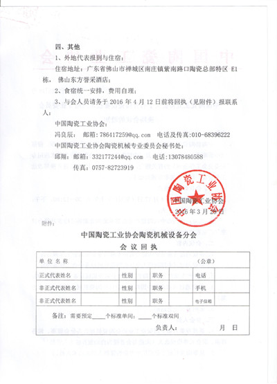 中國陶瓷工業(yè)協會關于召開陶瓷設備技術應用專業(yè)委員會換屆會議的通知
