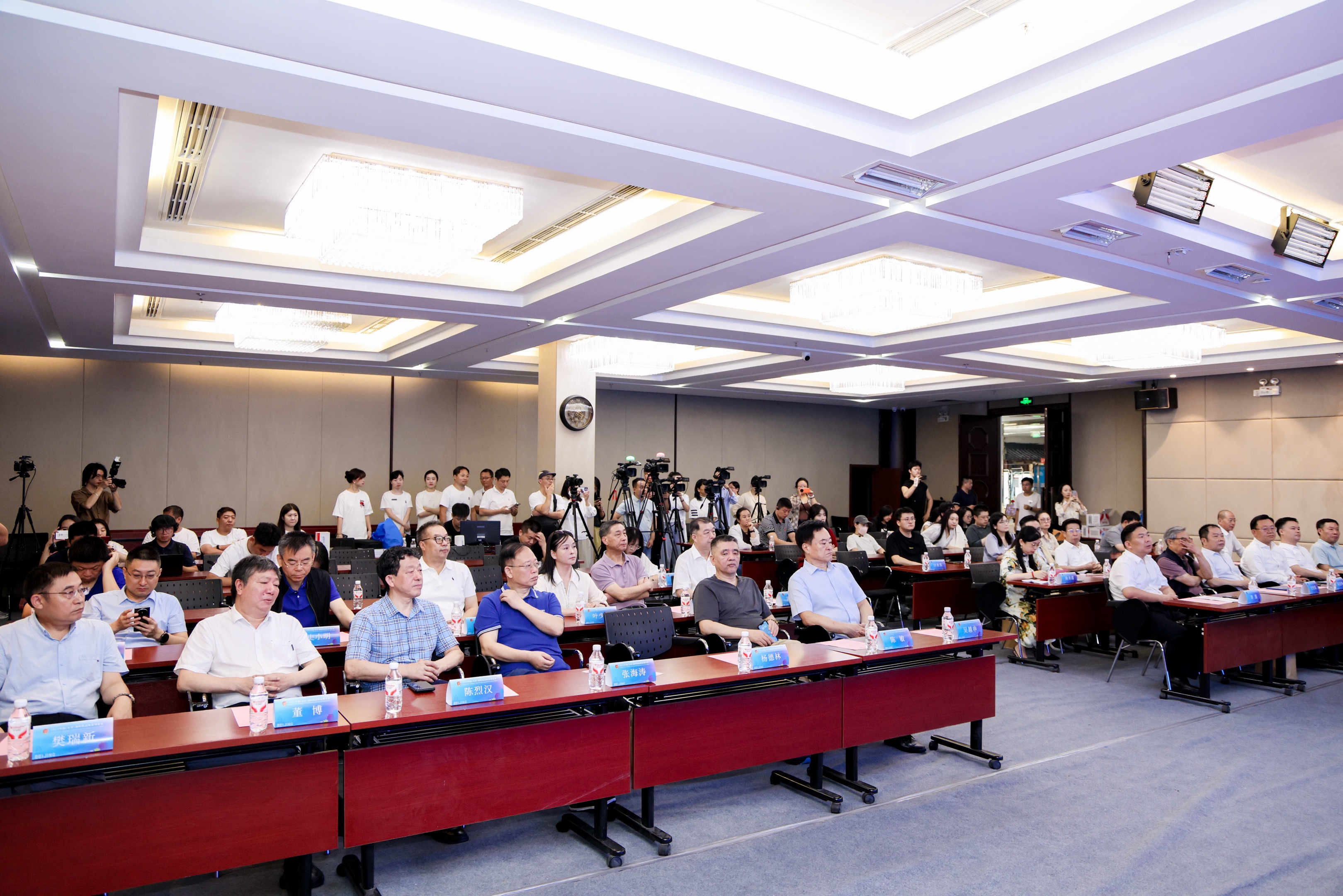 在團隊精心打磨設(shè)計下,展會專屬 LOGO 全新發(fā)布!發(fā)布儀式上,幾位領(lǐng)導攜手登臺,共同點亮標識,為產(chǎn)業(yè)盛會烙下全新符號。