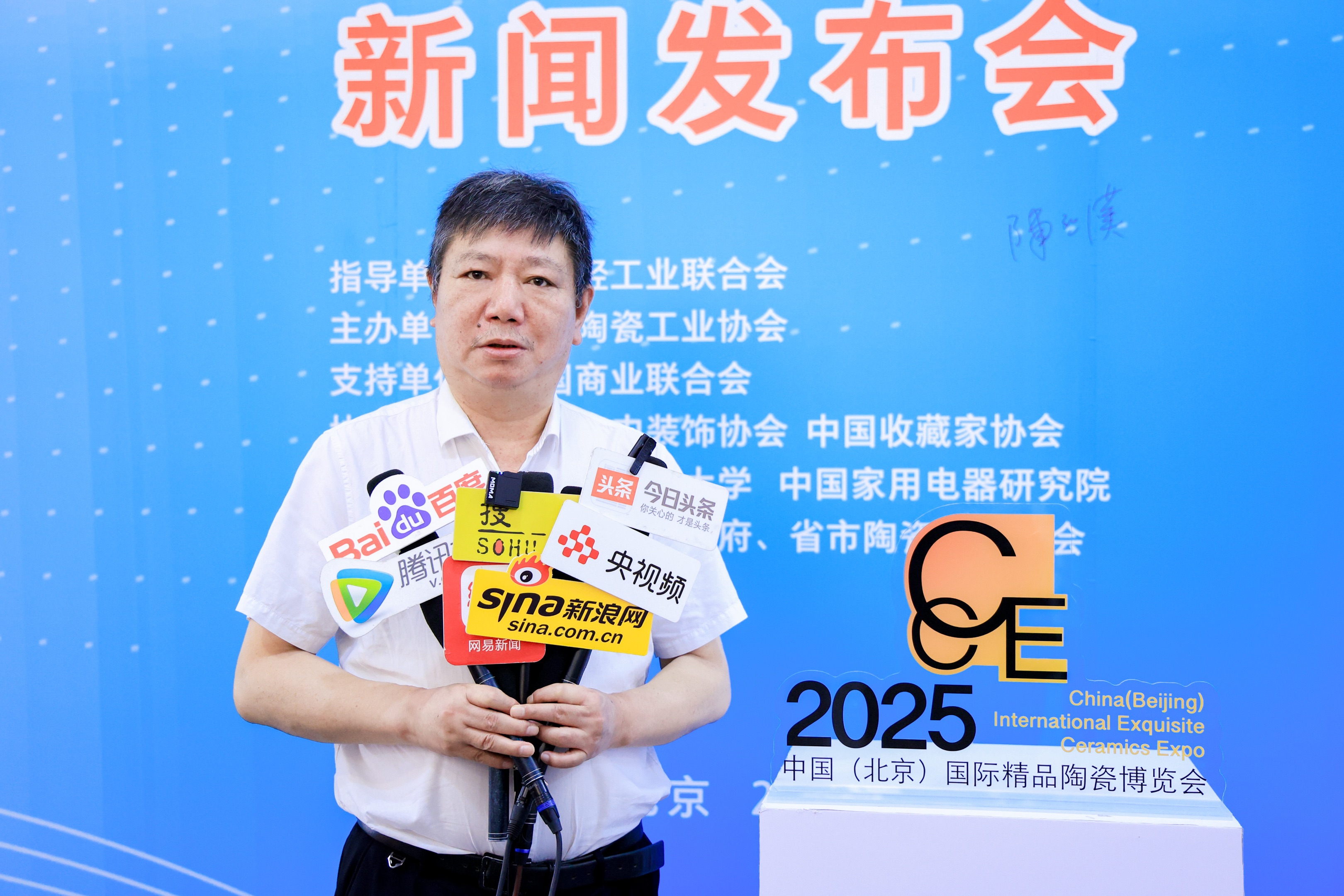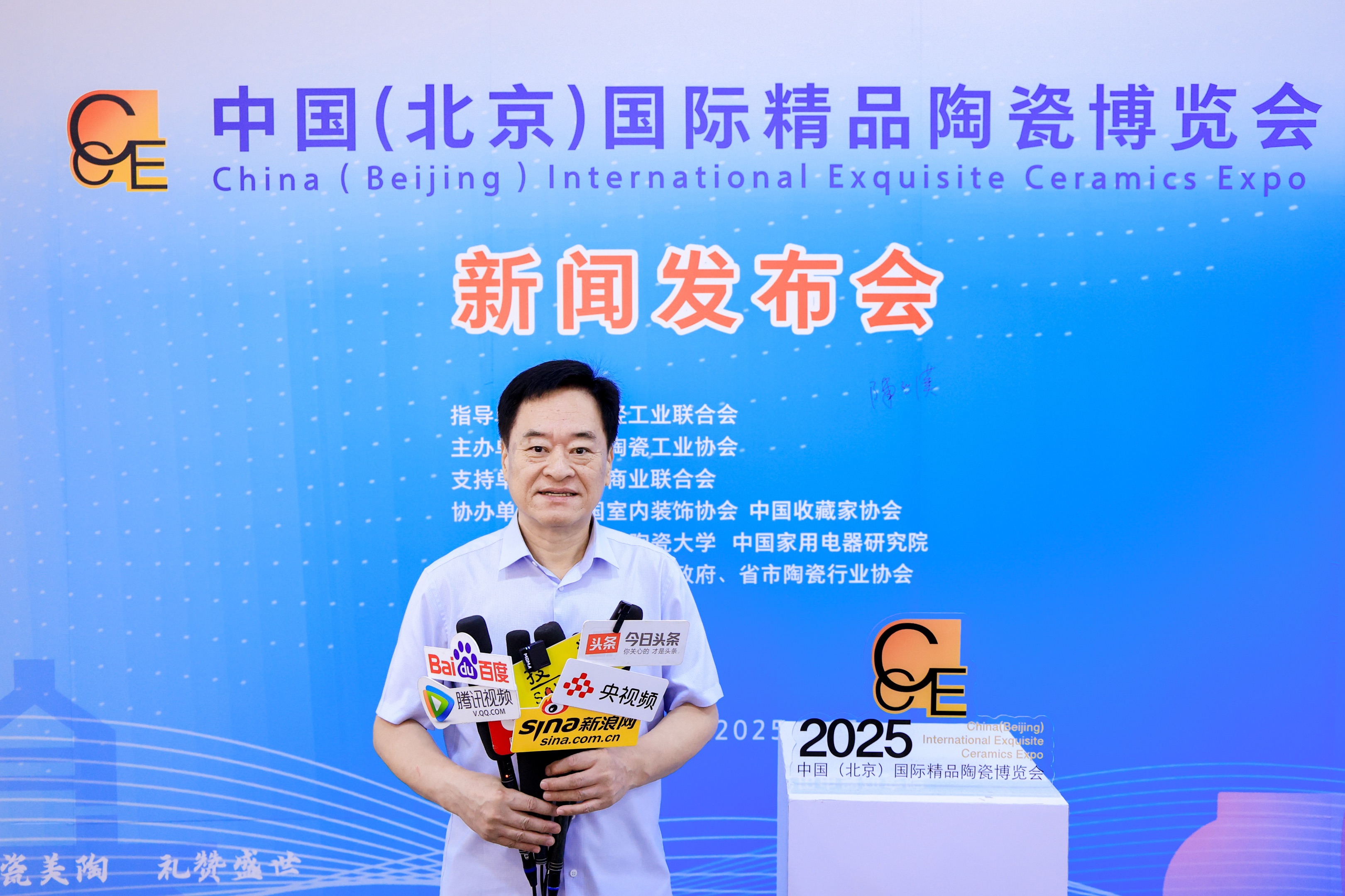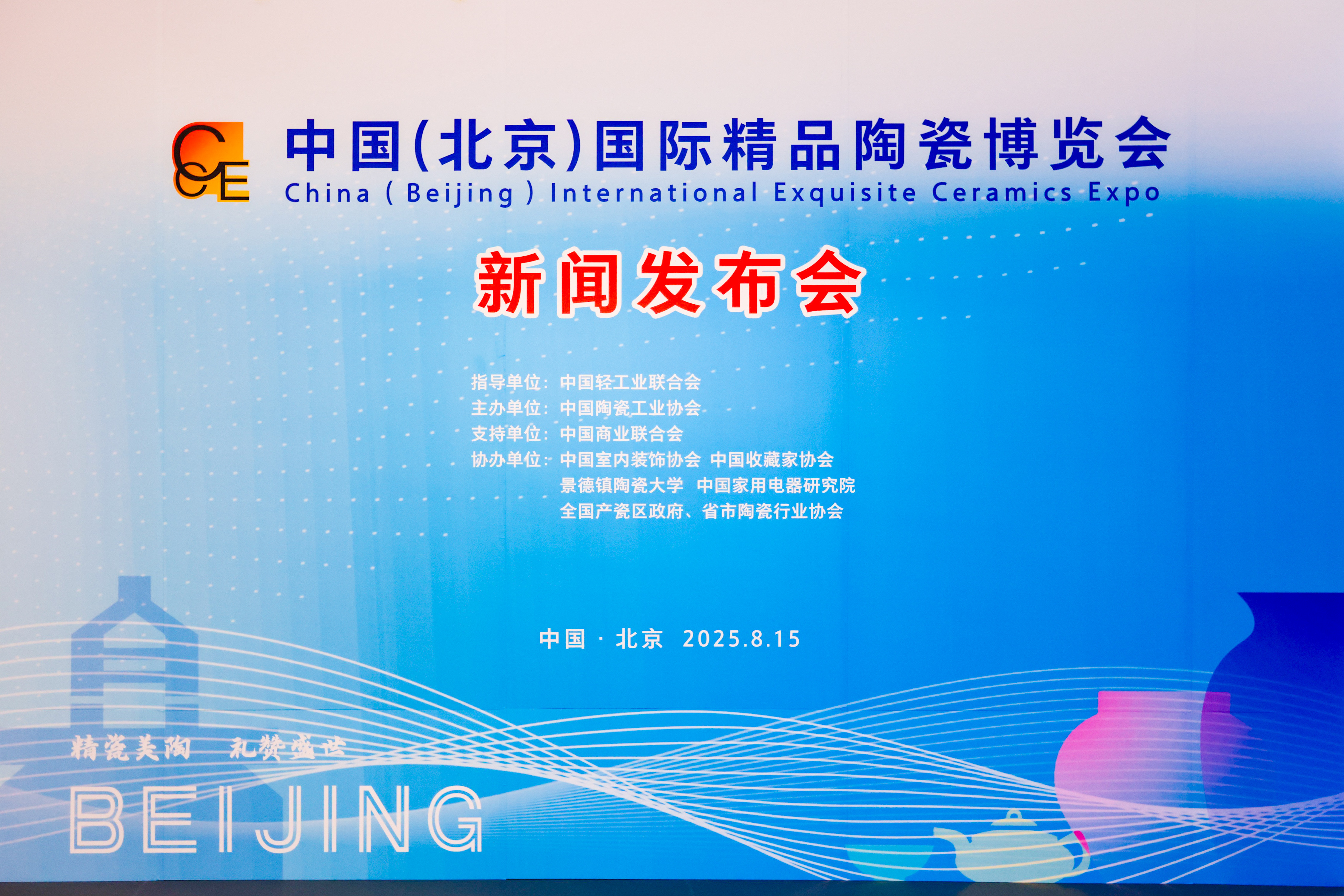 2025年8月15日,由中國輕工業(yè)聯(lián)合會指導,中國陶瓷工業(yè)協(xié)會主辦,中國商業(yè)聯(lián)合會支持,中國室內(nèi)裝飾協(xié)會、中國收藏家協(xié)會、景德鎮(zhèn)陶瓷大學、中國家用電器研究院、全國產(chǎn)瓷區(qū)政府、省市陶瓷行業(yè)協(xié)會協(xié)辦的2025中國(北京)國際精品陶瓷博覽會的新聞發(fā)布會于8月15日在北京陶瓷藝術(shù)館舉行。中國陶瓷工業(yè)協(xié)會劉挺理事長,中國書畫收藏家協(xié)會張德俊會長,中國商業(yè)聯(lián)合會副秘書長、會展部部長、采購商分會會長李寶,中國室內(nèi)裝飾協(xié)會王東明秘書長,江蘇省陶瓷行業(yè)協(xié)會史俊棠會長,閩龍集團陳進林董事長等領(lǐng)導及嘉賓出席了新聞發(fā)布會。