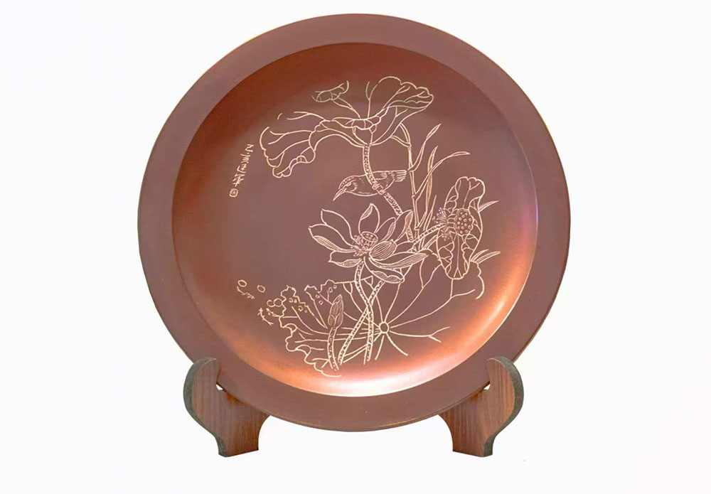 圖3管窯紅色連年有余陶盤 湖北明窯陶藝有限公司產(chǎn)品(何建平?提供)