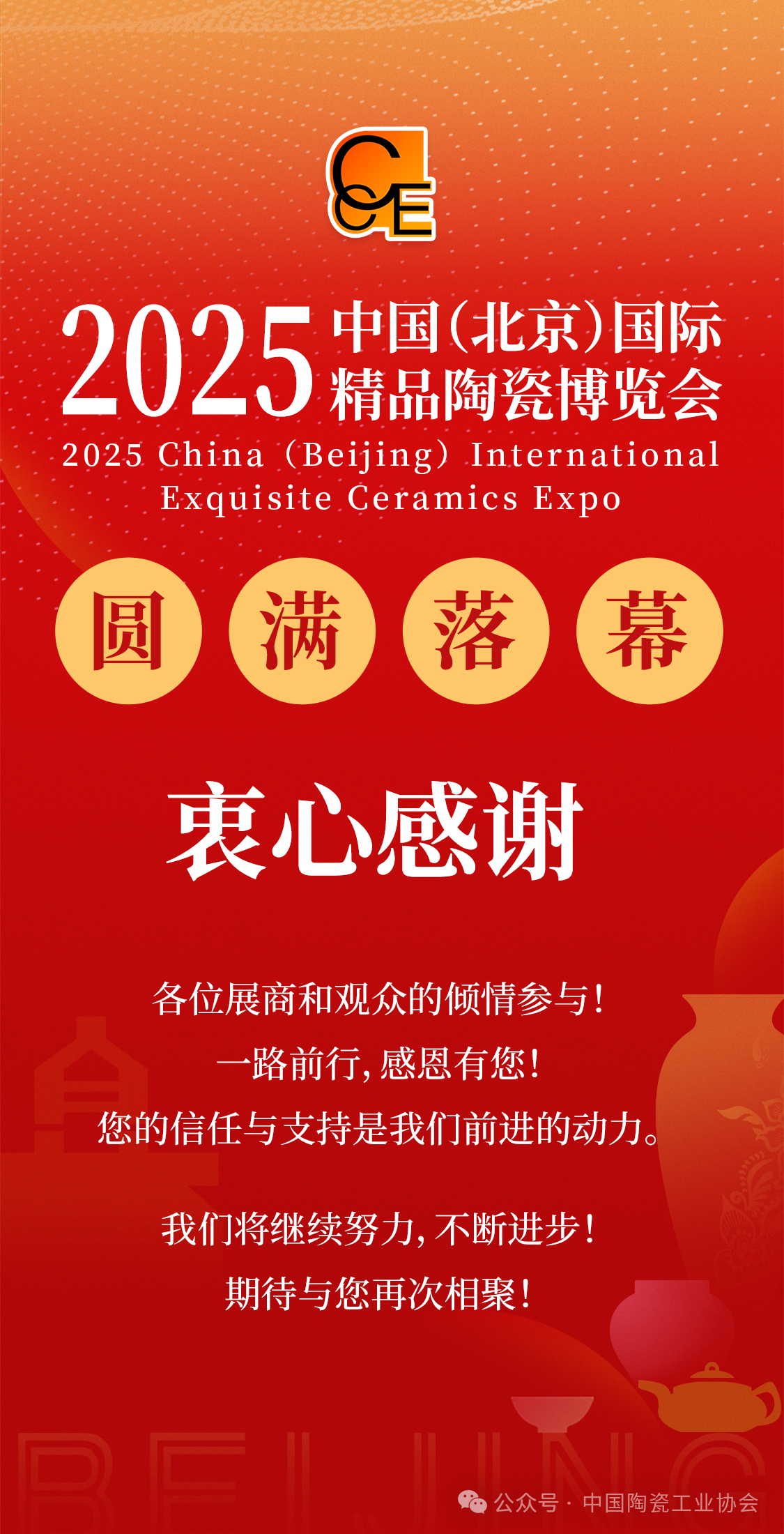 此次博覽會(huì)的圓滿(mǎn)閉幕,標(biāo)志著中國(guó)陶瓷產(chǎn)業(yè)在國(guó)際化、品牌化發(fā)展道路上邁出重要一步。中國(guó)陶瓷工業(yè)協(xié)會(huì)將持續(xù)發(fā)揮行業(yè)引領(lǐng)作用,整合全球資源,優(yōu)化展會(huì)平臺(tái),深化國(guó)際合作,推動(dòng)傳統(tǒng)陶瓷工藝與現(xiàn)代產(chǎn)業(yè)深度融合,助力中國(guó)陶瓷品牌走向世界,在高質(zhì)量發(fā)展的道路上書(shū)寫(xiě)更加精彩的篇章!