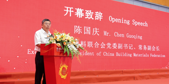中國建筑材料聯合會常務副會長、中國貿促會建材分會會長陳國慶在開幕致辭中對七家單位通力合作、共同呈現的展會盛況給予了高度認可與贊揚,對多年來一直關心和支持展會的廣大參展商、參觀采購商和新聞傳媒表示衷心感謝。