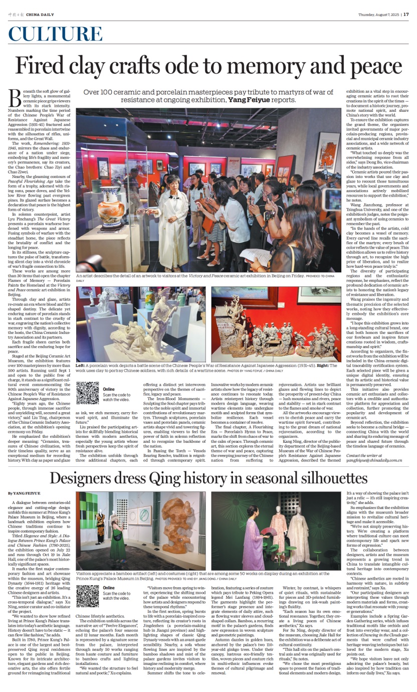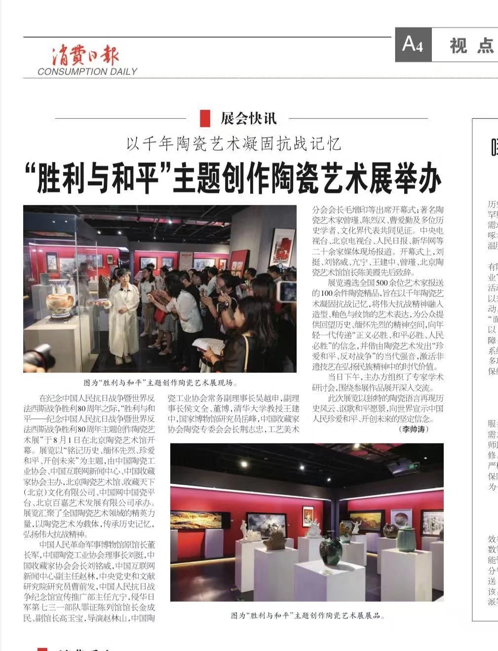 消費(fèi)日?qǐng)?bào):聚焦展覽借陶瓷語(yǔ)言再現(xiàn)歷史風(fēng)云,傳遞“正義必勝、和平必勝、人民必勝”的堅(jiān)定信念,高度評(píng)價(jià)其在激活非遺技藝當(dāng)代價(jià)值、向世界宣示中國(guó)人民珍愛(ài)和平、開(kāi)創(chuàng)未來(lái)的決心方面的意義。