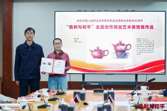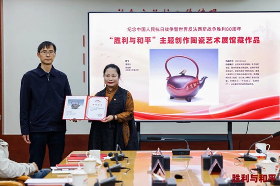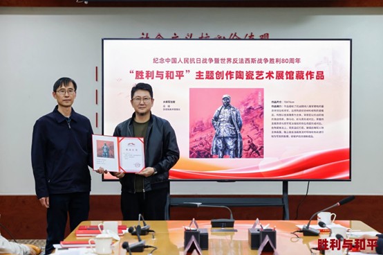 現場舉行了館藏證書頒發(fā)儀式。為部分捐贈作品的創(chuàng)作者頒發(fā)館藏證書,這些承載著和平愿景與藝術價值的陶瓷作品,將被紀念館永久收藏,成為傳承歷史記憶、弘揚民族精神的重要載體。