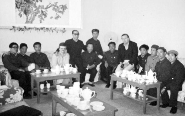 唐山綠色骨質瓷的外銷引起了國際廠商的注意。1979年5月25日,日本瀨榮陶器(株)菱野工廠的廠長伊藤肇先生和原料制造部部長野田順一先生來一瓷廠參觀考察。我方以禮相待,從原料到燒成等各種工序做了詳細介紹和參觀。后來,還有個以“聯(lián)合國考察團”名義來廠參觀過。還驚動了日本嗚海(株)的一個大佬來廠里“考察”過,就是下圖左二的這位客人。