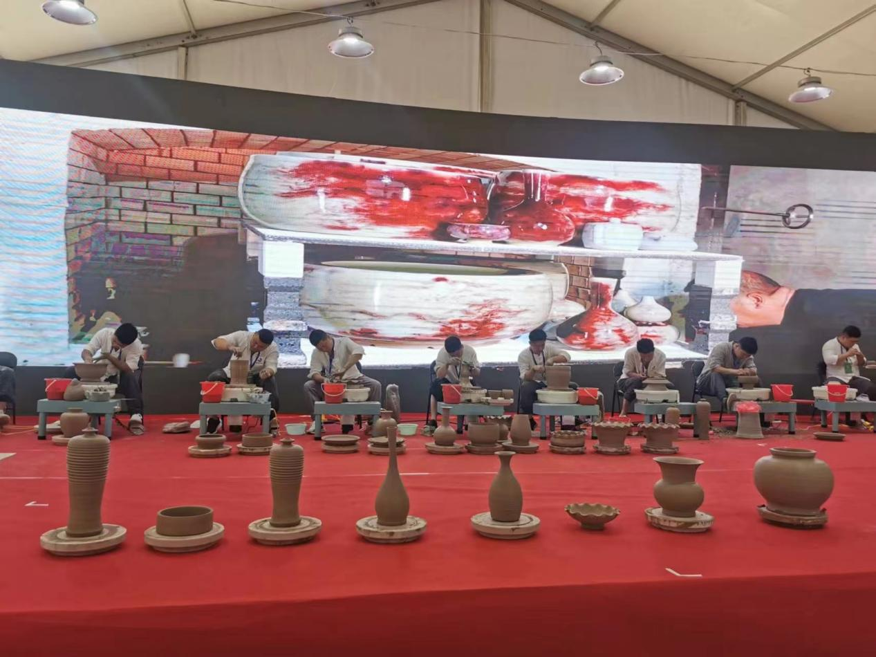 ? ? ? ?這次技能競(jìng)賽活動(dòng)中,除了各地市展廳的陶瓷技能成果展覽外,我們組織了大型陶瓷創(chuàng)作技能表演,參加表演賽的選手,主要來自禹州楊志鈞窯楊曉鋒的師徒班的同仁,其中有經(jīng)驗(yàn)豐富的老同志,也有陶瓷創(chuàng)作新秀,他們把整個(gè)陶瓷生產(chǎn)環(huán)節(jié)的工藝流程、設(shè)備都搬到了表演現(xiàn)場(chǎng),向在場(chǎng)的領(lǐng)導(dǎo)、觀眾、專家送上了一場(chǎng)精彩的“創(chuàng)作舞蹈”,技藝精湛、場(chǎng)面震撼,不斷迎來陣陣掌聲,連我這樣在陶瓷行業(yè)工作了40年的老人,都為之感動(dòng),陶瓷,這門在人們眼中是與泥土、火焰打交道的傳統(tǒng)工藝竟然還能這樣做!