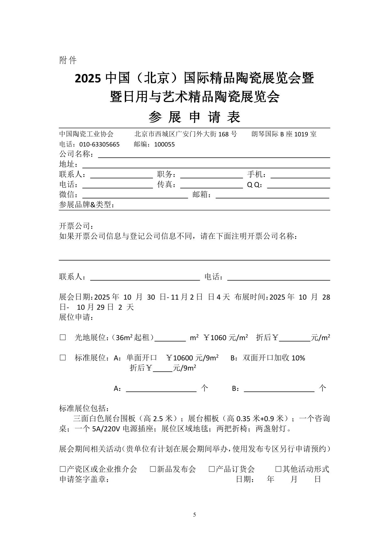日用與藝術(shù)精品陶瓷展覽會參展申請表.docx