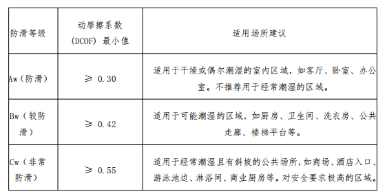 靜摩擦系數(shù)< 0.50:防滑性一般,僅適用于干燥區(qū)域的墻面和地面。