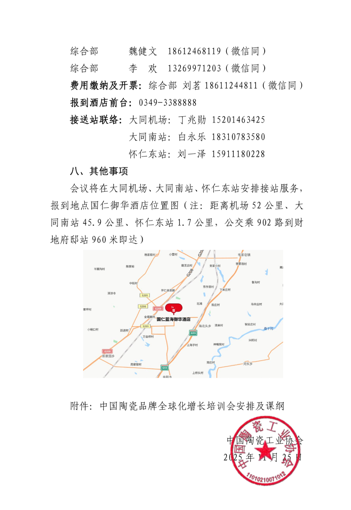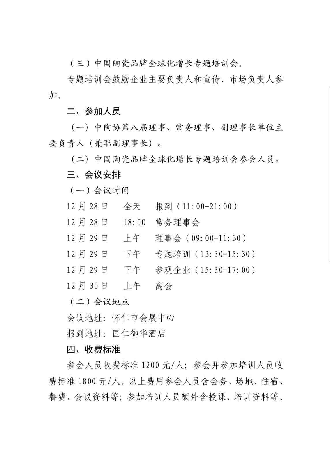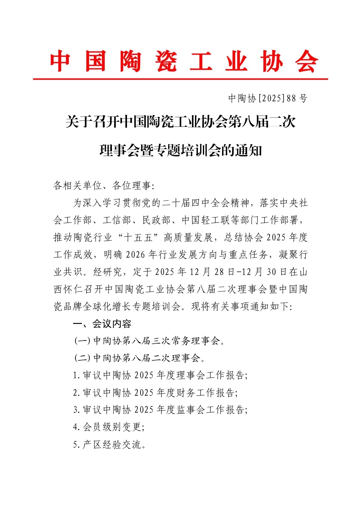 關(guān)于召開中國陶瓷工業(yè)協(xié)會(huì)第八屆二次理事會(huì)暨專題培訓(xùn)會(huì)的通知