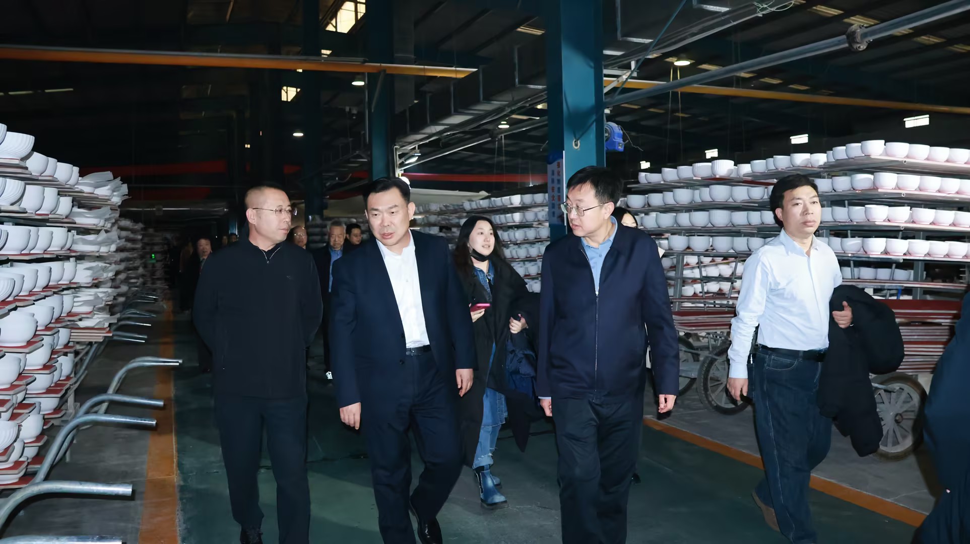 會前,中國陶瓷工業(yè)協(xié)會劉挺理事長在懷仁市市委丁裕書記、田勇副市長的陪同下,調(diào)研了陶瓷科技藝術(shù)創(chuàng)新中心、大師工作室、電商直播基地、全球選品中心等地。