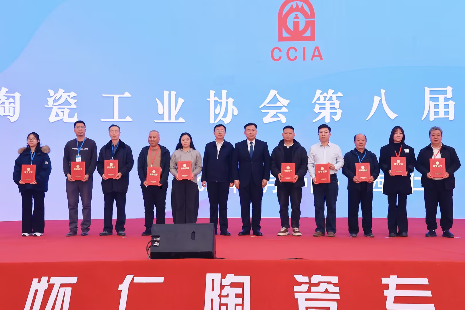 中國陶瓷工業(yè)協(xié)會劉挺理事長、懷仁市委常委、田勇副市長向部分捐贈者頒發(fā)了證書。