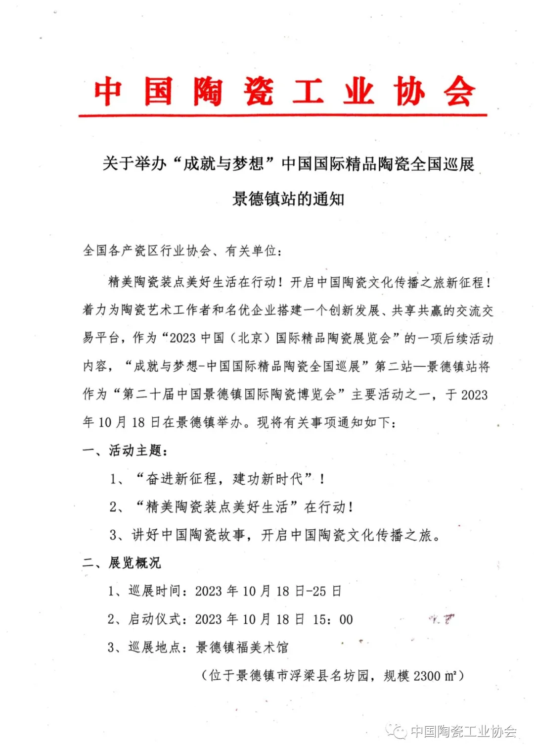 關(guān)于舉辦“成就與夢想”中國國際精品陶瓷全國巡展景德鎮(zhèn)站的通知