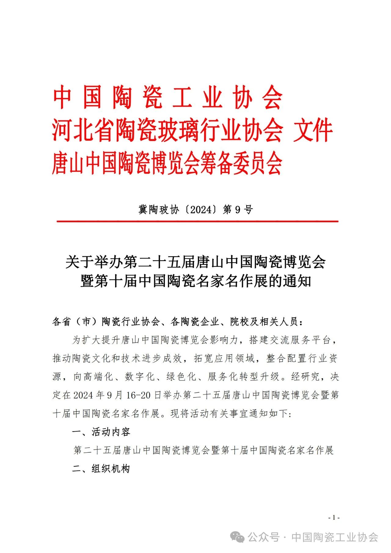 【通知】關(guān)于舉辦第二十五屆唐山中國陶瓷博覽會暨第十屆中國陶瓷名家名作展的通知
