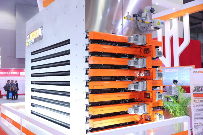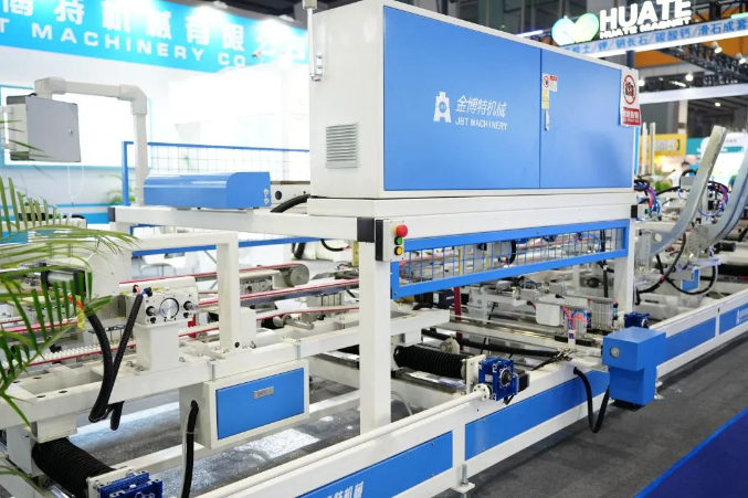在技術創(chuàng)新層面,多家企業(yè)亮出了最新的科研成果與智能化技術。如薩克米展示了可搭配使用的SDP噴墨打印機和DDG干粒打印機,墨水和干粒協(xié)調打印,呈現無與倫比的紋理質感和3D效果;中鵬熱能的第三代智能巡窯系統(tǒng),可以實現窯爐全過程安全監(jiān)控;摩德娜推出了行業(yè)首創(chuàng)九層干燥窯,兼具產量大、效率高、切換快、節(jié)能好等優(yōu)點;賀祥的智能馬桶高壓成型工作站,一個搬運機器人負責6個成型工位的送坯、取坯、自動涂泥,并可隨意靈活地配置坐便款型;蘭科智能最新推出的六軸機器人具備6個關節(jié),自由靈活,可適應任何碼包方式,定位精準,重復定位±0.02㎜;金博特展出了雙伺服傳動磨邊機,智能高效、兼容性強,對角線精度高(誤差在0.05毫米內);銳博機電的智能瓷磚拋底機,是一款針對瓷磚背面氧化物清潔而研發(fā)的設備,可以幫助陶企擺脫“瓷磚底坯脫模劑”的困境......