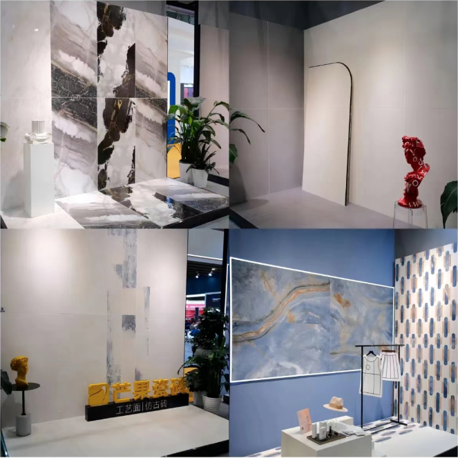 在產品設計和工藝創(chuàng)新方面,道氏技術的“針晶干?!眲?chuàng)新了結晶晶體形態(tài)從顆粒狀轉變?yōu)獒槧?、條狀、板狀、放射纖維狀;史帝華夫的設計結合現代工藝技術,注重還原石材表面質感效果,讓產品的觸感更立體逼真;中揚新材攜手星誼精密展示了8大創(chuàng)意場景的應用,并從歐洲引進了8種不同的新工藝;金威勝的數碼雕刻墨水,不僅有精雕墨水的通透和線條的準確度,還具備了下陷釉的深度;大角鹿展出了第3代柔光納米超耐磨鉆石釉技術產品,解決了瓷磚耐磨性和不易清潔的問題......