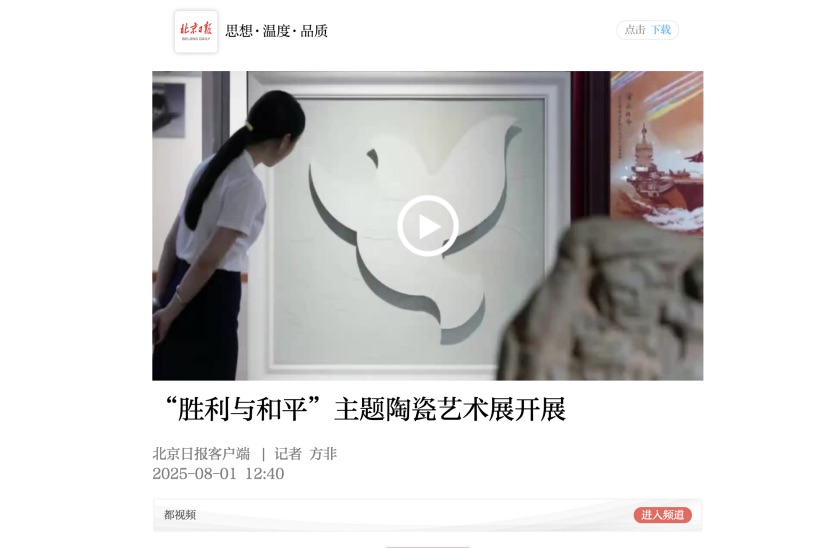 北京電視臺(tái)財(cái)經(jīng)頻道《首都經(jīng)濟(jì)報(bào)道》:聚焦陶瓷藝術(shù)與抗戰(zhàn)主題的創(chuàng)新融合,報(bào)道了青年藝術(shù)家運(yùn)用現(xiàn)代雕塑技法(如《不朽狼牙山》《軍魂》)對(duì)紅色歷史與傳統(tǒng)工藝進(jìn)行煥新詮釋,賦予抗戰(zhàn)精神新時(shí)代表達(dá)。