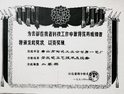 1982年9月,由一瓷廠和唐山陶研所組成的骨質瓷中試小組榮獲輕工部科技成果(集體)三等獎。